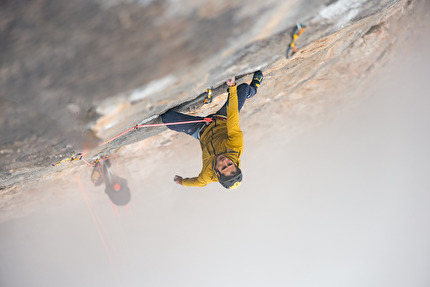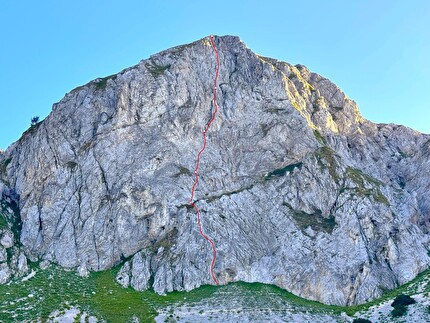 The route line of 'Imagine... all the people', Scoglio della Sassetelli, Reatini Mountains, Central...