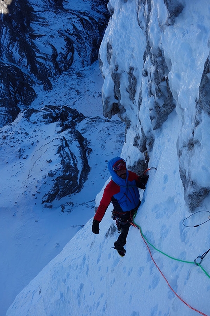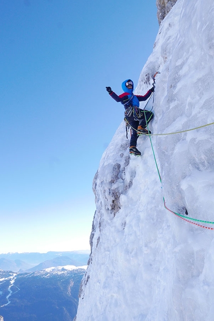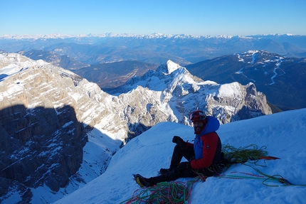 Selvaggia Sorte: Tomas Franchini climbing Cima Tosa, Brenta Dolomites, with Alessandro Lucchi on 12/03/2013
