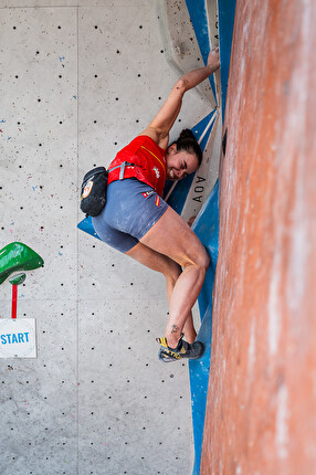 Ginevra Calandrella in belay on the fourth pitch of 'Imagine... all the people', Scoglio...