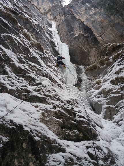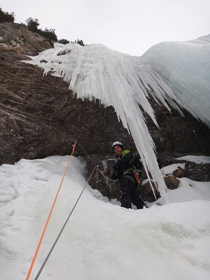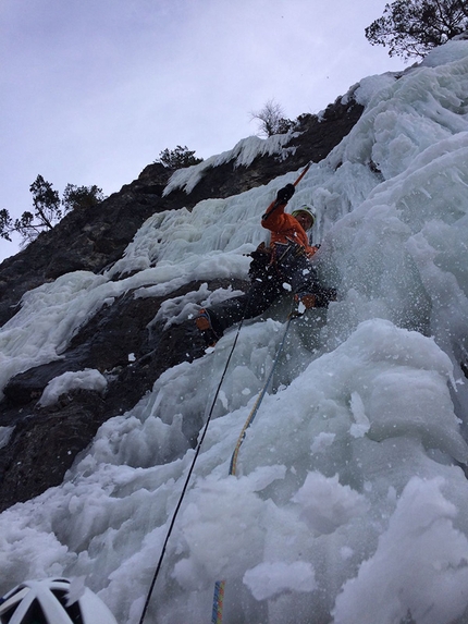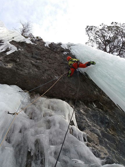 Burian: Matteo Giglio climbing the first pitch, Scottish style