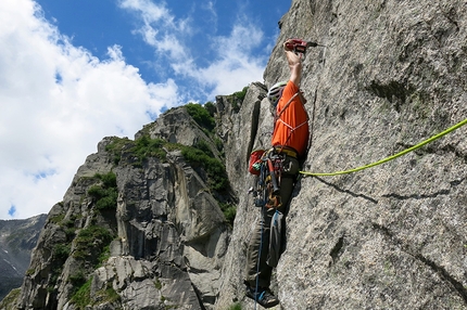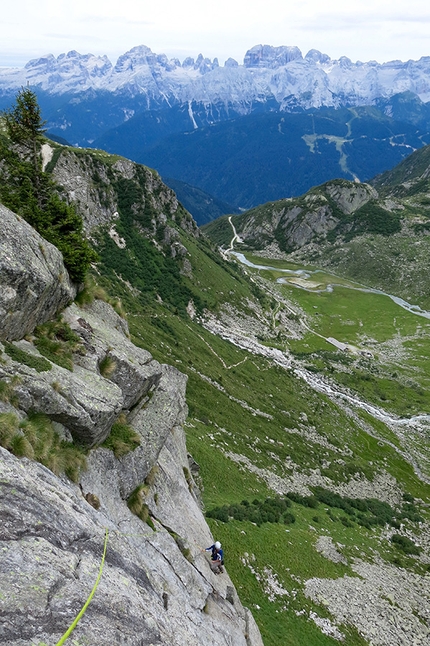 : Chiara Stenghel climbing La sirenetta, Croz del Rifugio, Presanella.
