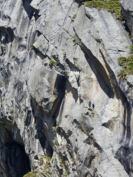 : Francesco Salvaterra making the first ascent of La sirenetta, Croz del Rifugio, Presanella.