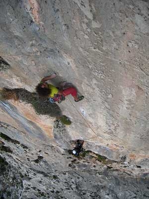 Cardiopalma: Fabio Palma climbing pitch 2 of Cardiopalma (ph by Simone Pedeferri)