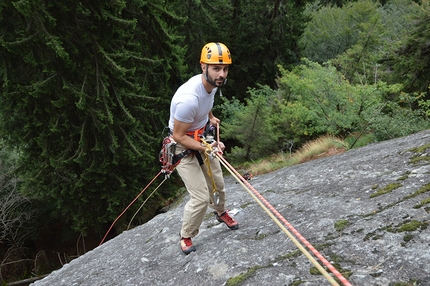 : Damiano Meli climbing pitch 2 (6b) © Stefano Righetti