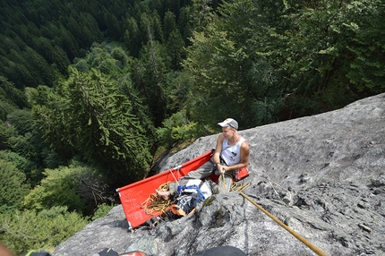 : Pino Calandrella climbing pitch four