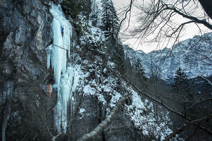 Hysteria: Romano Benet and Tine Cuder making the first ascent of Hysteria (M7, WI6+...