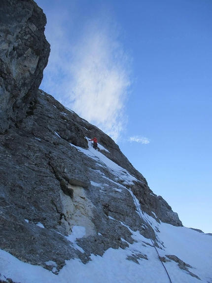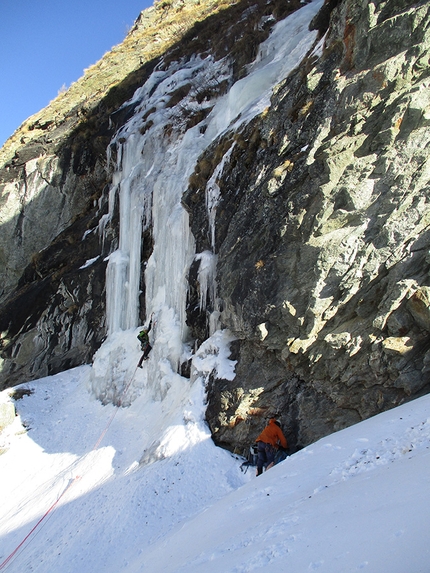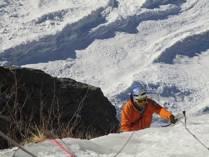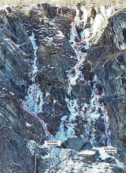 : Climbing pitch 1 of Nos dames de La glace © Bonfanti