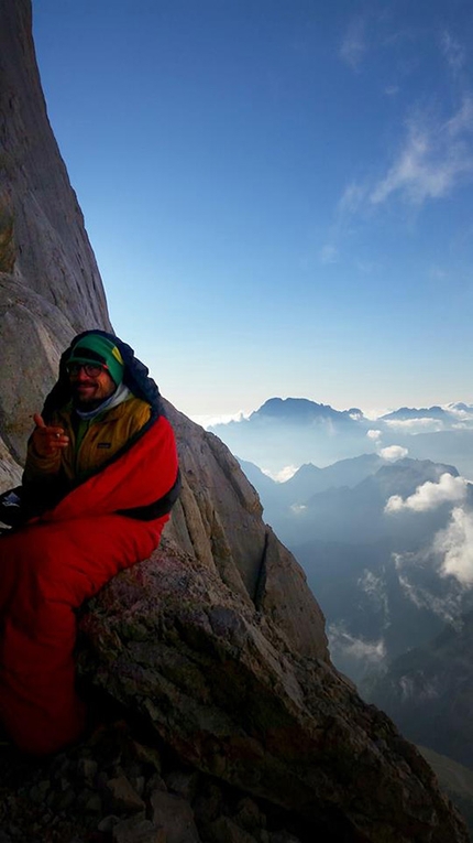 Leonardo Comelli bivying on Marmolada, Dolomites