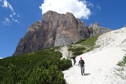 Scala del Minighel and Tofana di Rozes circuit: Walking along the path at the...