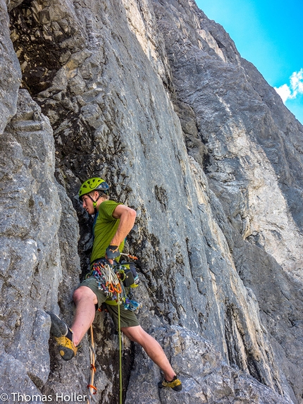 Magic Fox: Pier Smaltini climbing the penultimate pitch of Magic Fox