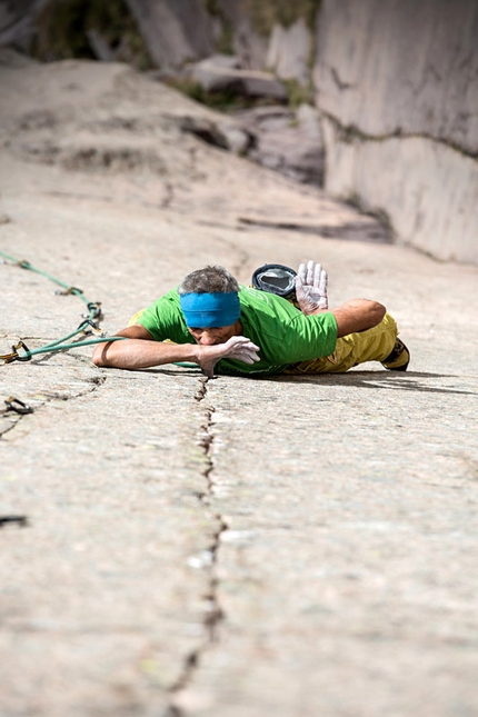 Pinne gialle: Manolo climbing Pinne Gialle (Tognazza, Passo Rolle, Dolomites)