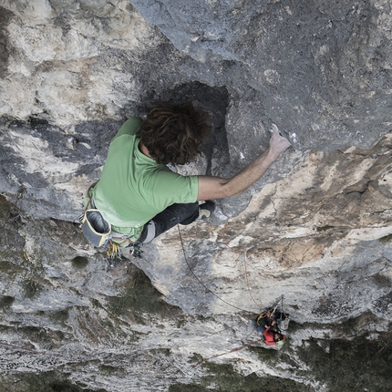 : Matteo Colico climbing pitch 1 of Grazie Ganesh, Buco del Piombo