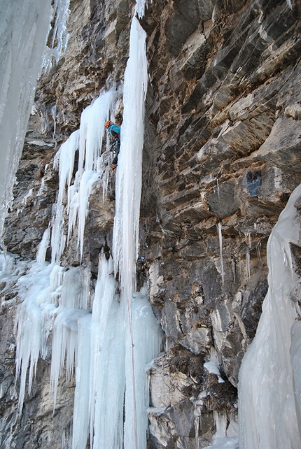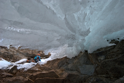 Chloë: Ezio Marlier making the first ascent of the icefall Chloe, vallone del Grauson,...