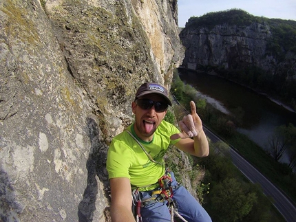 : Roberto Vigiani making the first ascent. Photo Luisa Siliani