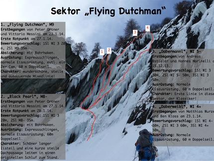 Umbaltal Eisarena: Peter Ortner climbing Flying Dutchman, M9