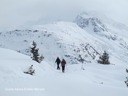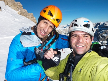 Goulotte Raggio di sole + Cascata dello Spallone: Tracks along Cengia dei Fassani. ©...