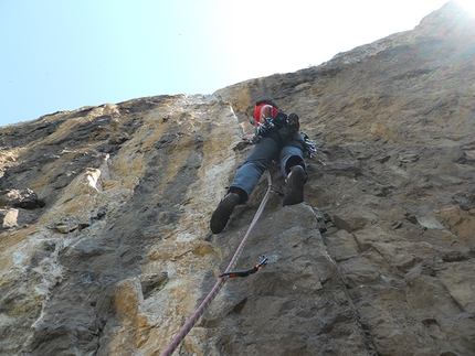 Gabriele Sbisi Gorobey climbing Fungo Magico, Osp, Slovenia