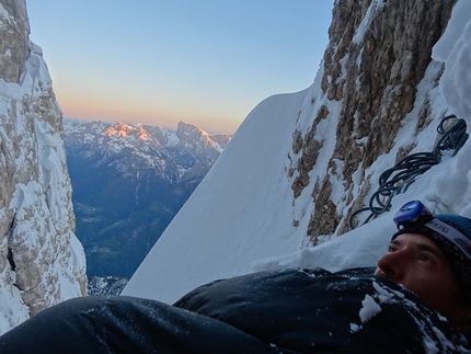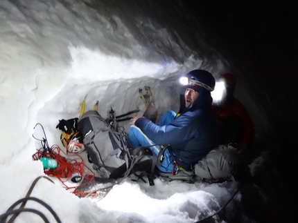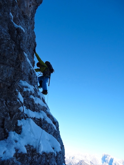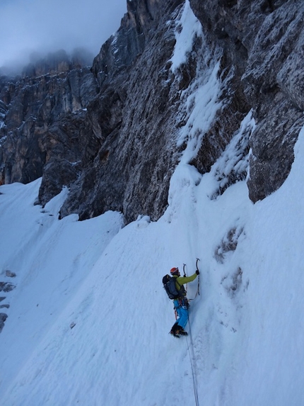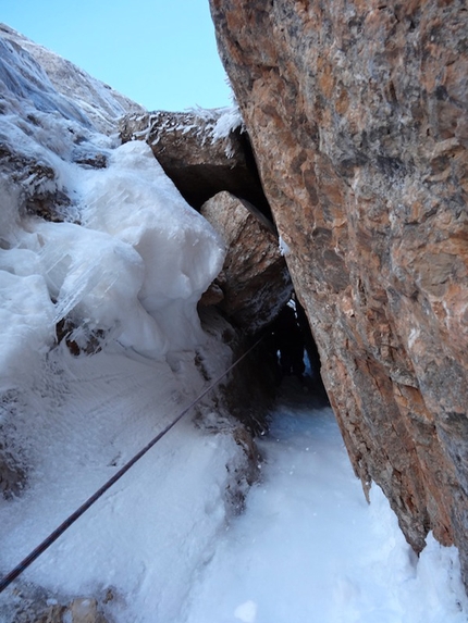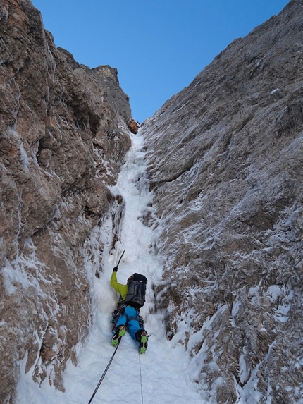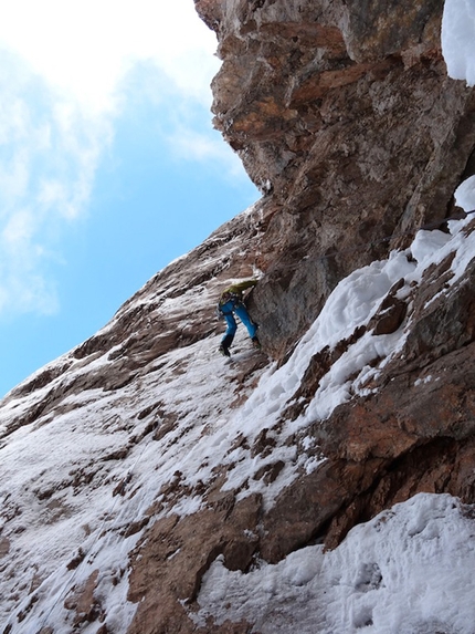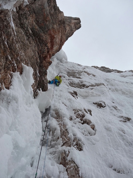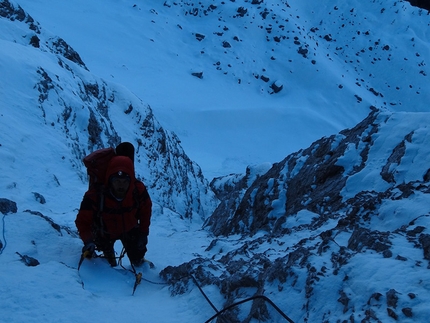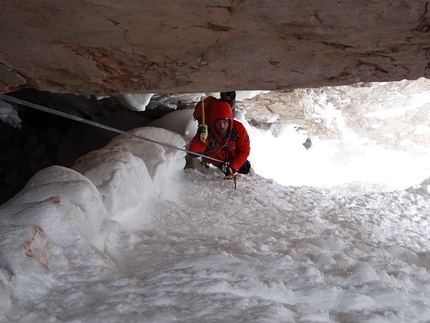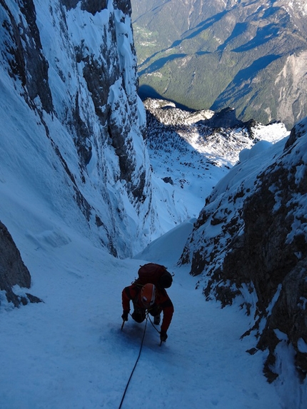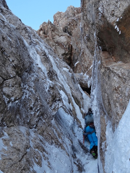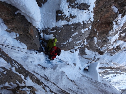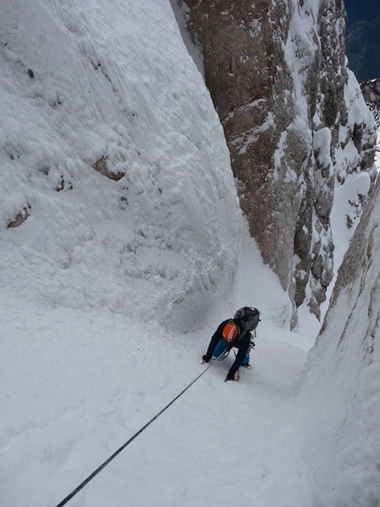 : Fabrizio Dellai in the icy chimney on pitch 8