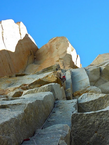Josh Wharton on the ridgeline-summit of Aguja Desmochada, Patagonia