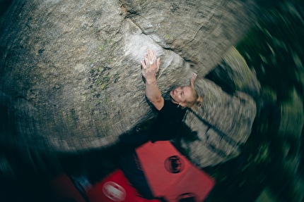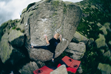 Lucia Dörffel sending 'Hazel Grace' (8B+) at the Gotthard Pass, Switzerland