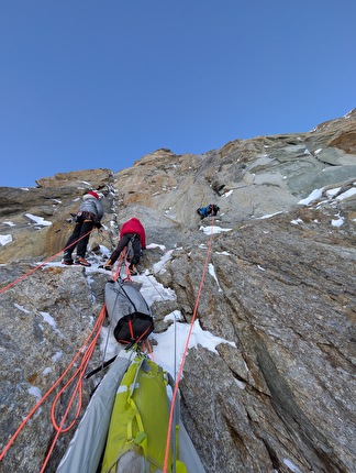 The first ascent of 'Basique' on Point Whymper, north face of Grandes Jorasses (Léo...