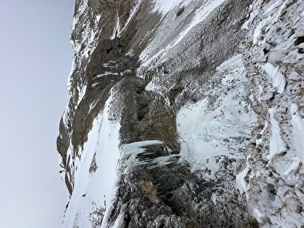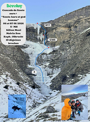 The first ascent of 'Saute Aure et God Homme' at Cascade de Saute Aure...