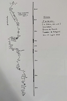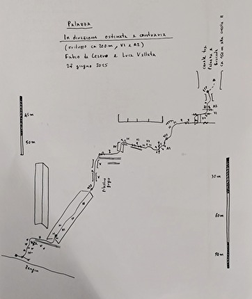 The topo of 'La Poderosa' on Campanile di Val Montanaia, Dolomites (Fabio de Cesero,...