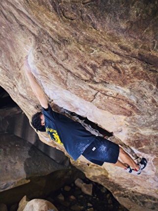 Ryuichi Murai repeating 'Return of the Sleepwalker' (V17/9A) at Red Rocks, USA on 23/11/2025