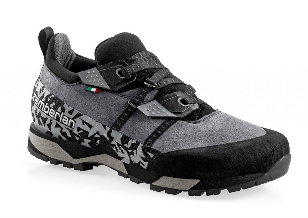 Waterproof suede leather approach shoes for mountain hikes and via ferrata.