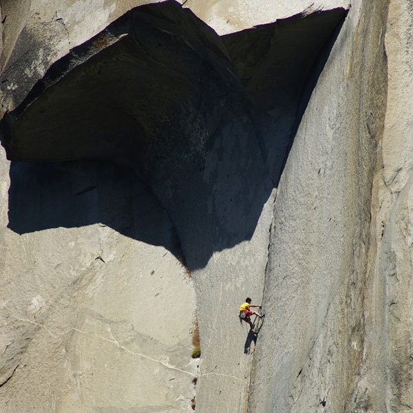The Nose: Yuji Hirayama approaching The Great Roof on The Nose. Photo Tom Evans