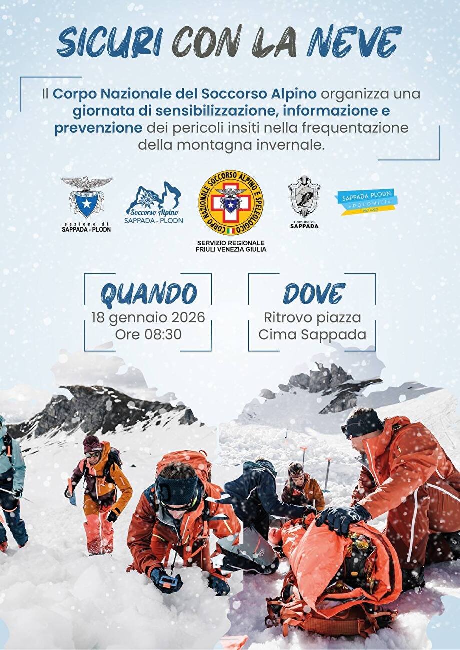 L'appuntamento è per domenica 18 gennaio alle 8.30 a Cima Sappada, presso la piazzetta della chiesa, con i soccorritori della omonima stazione alpina del Soccorso Alpino del Friuli Venezia Giulia, previa comunicazione al numero 347 019 09 82 .