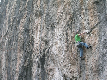 Vuoi perché avevo preso simpatia per questo luogo, vuoi perché mi sembrava un peccato mortale non valorizzare la parte migliore del muro, a partire dal ‘97 mi sono preso la briga di chiodare. Oltretutto è un posto molto comodo perché c’è un facile sentiero dall’alto, poi alberi per calarsi e da lì si fa la sosta e si inizia.