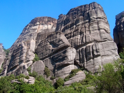 BibliografiaCi sono due guide da prendere in considerazione. La prima di Dietrich Hasse e Heinz Lothaz Stutte: "Meteora Climbing and Hiking Guide" 1986, in inglese e tedesco, con circa 230 vie, informazioni generali su Meteora, mappe e accessi. La seconda guida risale al 2000 ed è sempre a cura di Dietrich Hasse e Heinz Lothaz Stutte, si intitola "Meteora Climbing Part II" . Questa guida si aggiunge alla precedente ed include tutte le vie dal 1986 fino ad'oggi, è tradotta in inglese, tedesco, italiano e slovacco. In totale ci sono circa 670 vie su 170 torri.