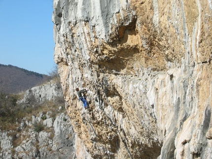 Dal’A4 procedere verso la Slovenia, attraversare il confine di Pese, svoltare a destra verso Koper e, scendendo la strada sempre sulla destra, svoltare verso Osp si continua fino al ingresso del paese dove si nota l’evidente “ferro di cavallo”. Parcheggiato con la massima educazione si imbocca il sentiero che porta alla falesia in 7 minuti. Vi prego non lasciate imondizie, qui ce né già tante.