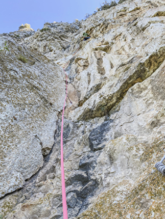 Vincenzo sul traverso del secondo tiro di 'Bohemian Rhapsody' al Monte Albino (Monti Lattari,...