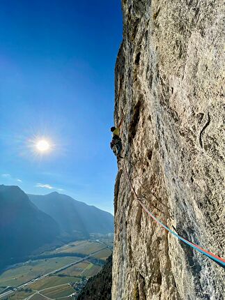 Santiago Padros sul sesto tiro di 'Girl' alla Pala del Boral, Monte Cimo, Val d'Adige