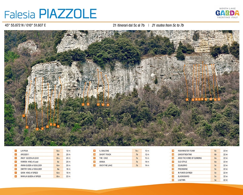 Piazzole, Arco, con 21 vie da 5c al 7b