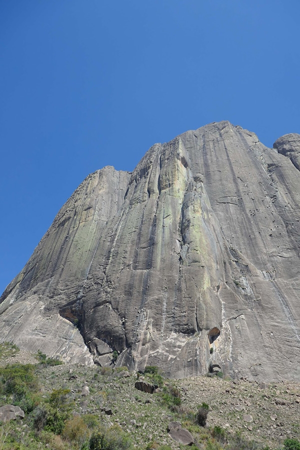 La parete est di Tsaranoro Be, massiccio di Tsaranoro, Madagascar che ospite anche la via 'Lalan’i Mpanjaka' (09/2017 Tobias Wolf, Chris-Jan Stiller)