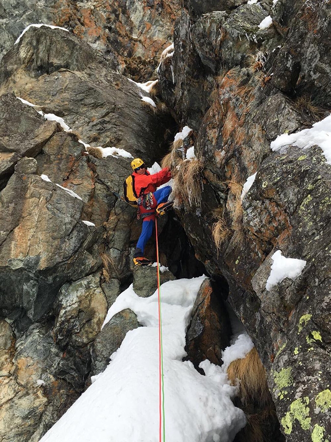 François Cazzanelli durante la prima salita di Il Sole di Mezzogiorno, parete Singlin in Valtournenche, Valle d'Aosta