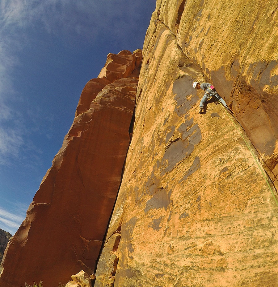 Indian Creek, Federica Mingolla sale un camino di 5.10c