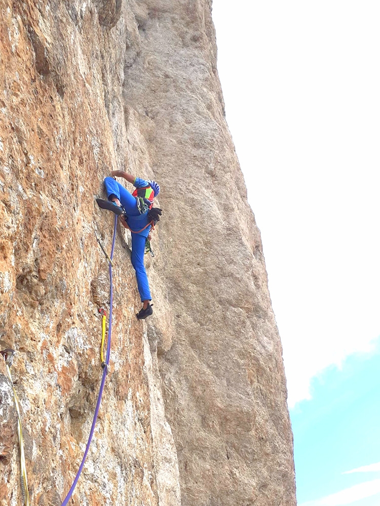 sulla parete sudest dello Spallone del Sassolungo nelle Dolomiti.