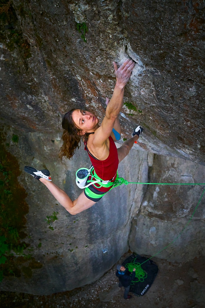 Melissa Le Nevé su Action Directe nel Frankenjura, Germania. Liberata da Wolfgang Güllich il 14 settembre 1991, la climber francese si è aggiudicata l'ambita prima femminile all'inizio 2020 dopo 6 anni di tentativi