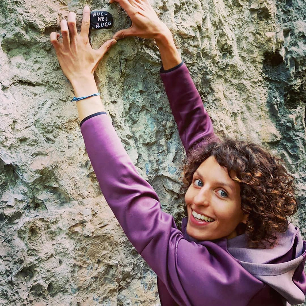 Sara Leoni sotto il suo primo 7c onsight, Buco nel buco al Muro dell'Ilex a Madonna della Rota