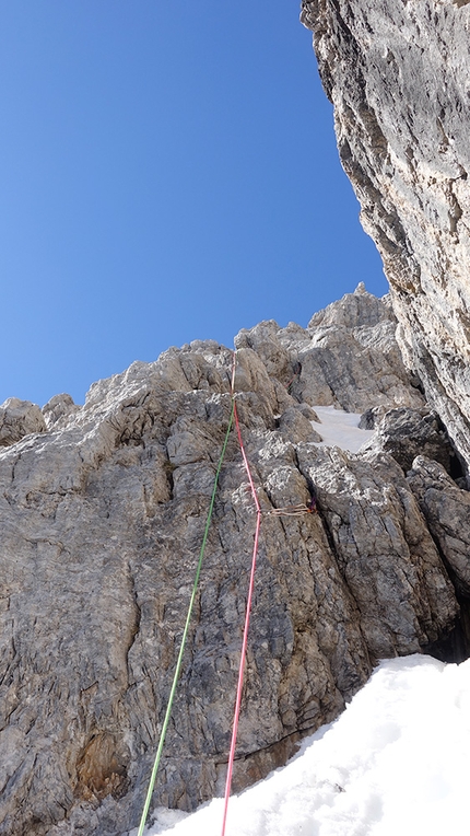 Viaggio nel Tempo: 13° tiro - Cima Tre Croci, Piccole Dolomiti (Matteo Rini, Matthias...
