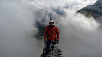 Dittatura Digitale: Cima Uomo, Dolomiti di Brenta, Luca Giupponi in cima con le nebbie