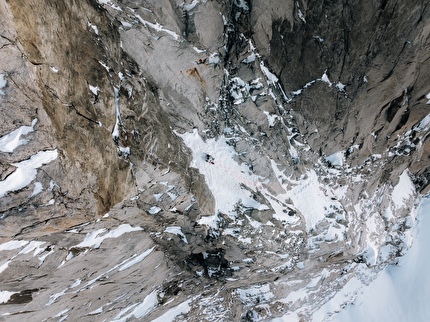 Charles Dubouloz durante la solitaria invernale di 'Divine Providence' su Grand Pilier d'Angle, Monte...