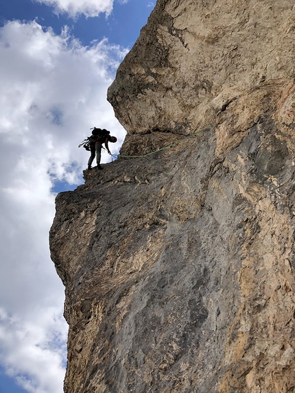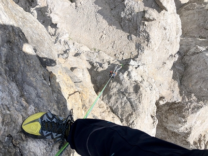 Fungo d'Ombretta: Dolomiti: la prima calata dalla cengia