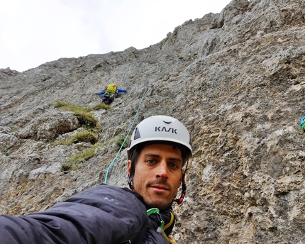 Covid Line: Scoglio della Sassetelli (Monte Terminillo) Appennino Centrale, Giulio Longhi in sosta mentre...