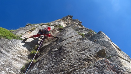 Il quarto tiro di 'Penna Bianca', Torre del 50°, Alpi Lepontine (Max Garavaglia, Walter...