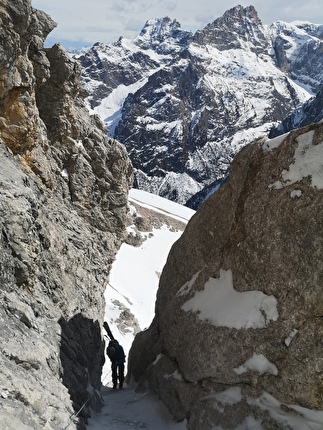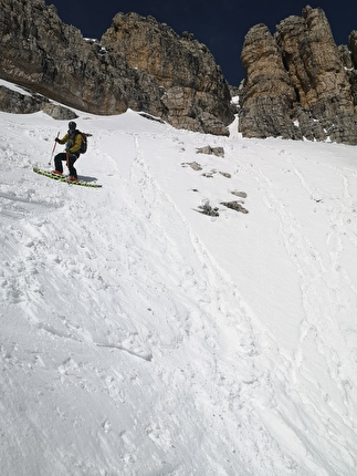 Prima discesa della parete sud del Crodon di San Candido (2981m), Val Pusteria, Dolomiti...